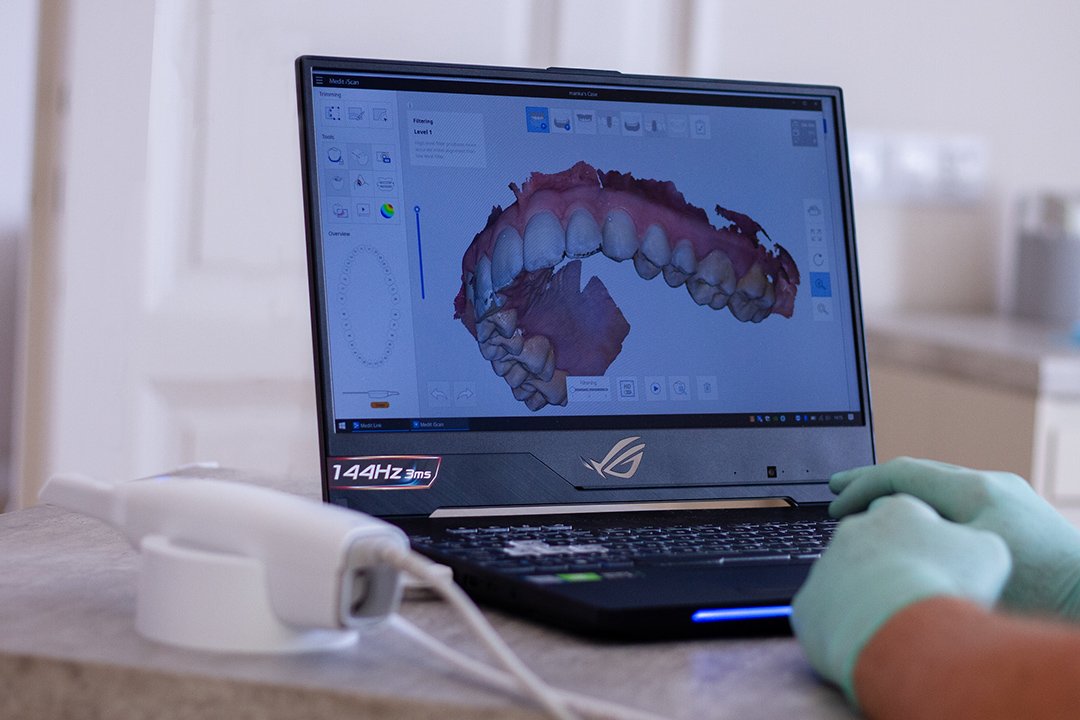 Büszkék vagyunk, hogy elsők között használjuk Magyarországon a világszinten elérhető legmodernebb technológiát a páciensek kezelésének megtervezéséhez. Ami számunkra a jelen, az más fogászatoknál csupán a jövő. Digitálisan tudunk adatot rögzíteni, tervezni, kiszámítani, látványtervet készíteni.